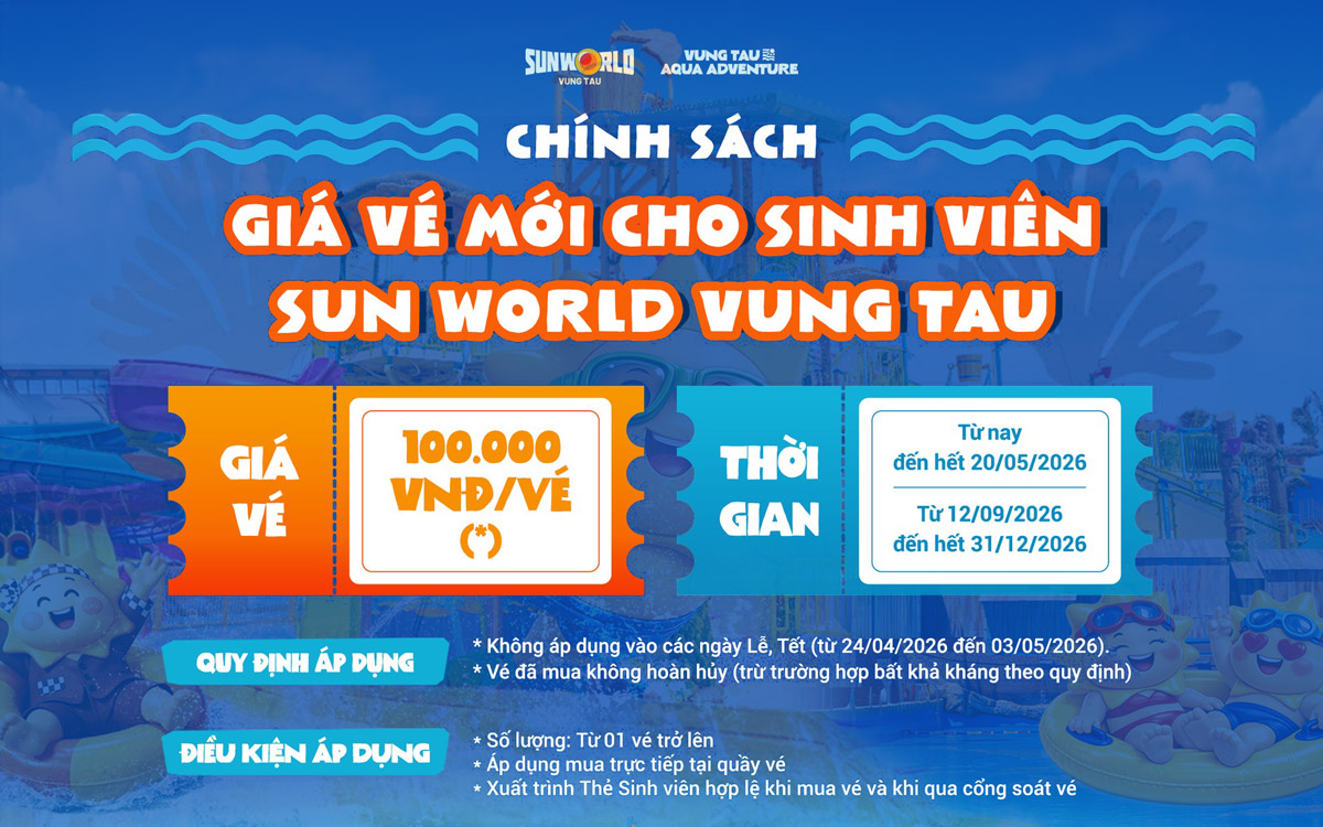 Với mức giá hấp dẫn và hàng loạt trải nghiệm sôi động đang chờ đón, Sun World Vung Tau hứa hẹn sẽ trở thành điểm đến “giải nhiệt” không thể bỏ lỡ dành cho sinh viên trong năm 2026. Đây là cơ hội tuyệt vời để bạn cùng hội bạn thân lên lịch cho một ngày vui chơi trọn vẹn, tận hưởng mùa hè theo cách thật bùng nổ và đáng nhớ.